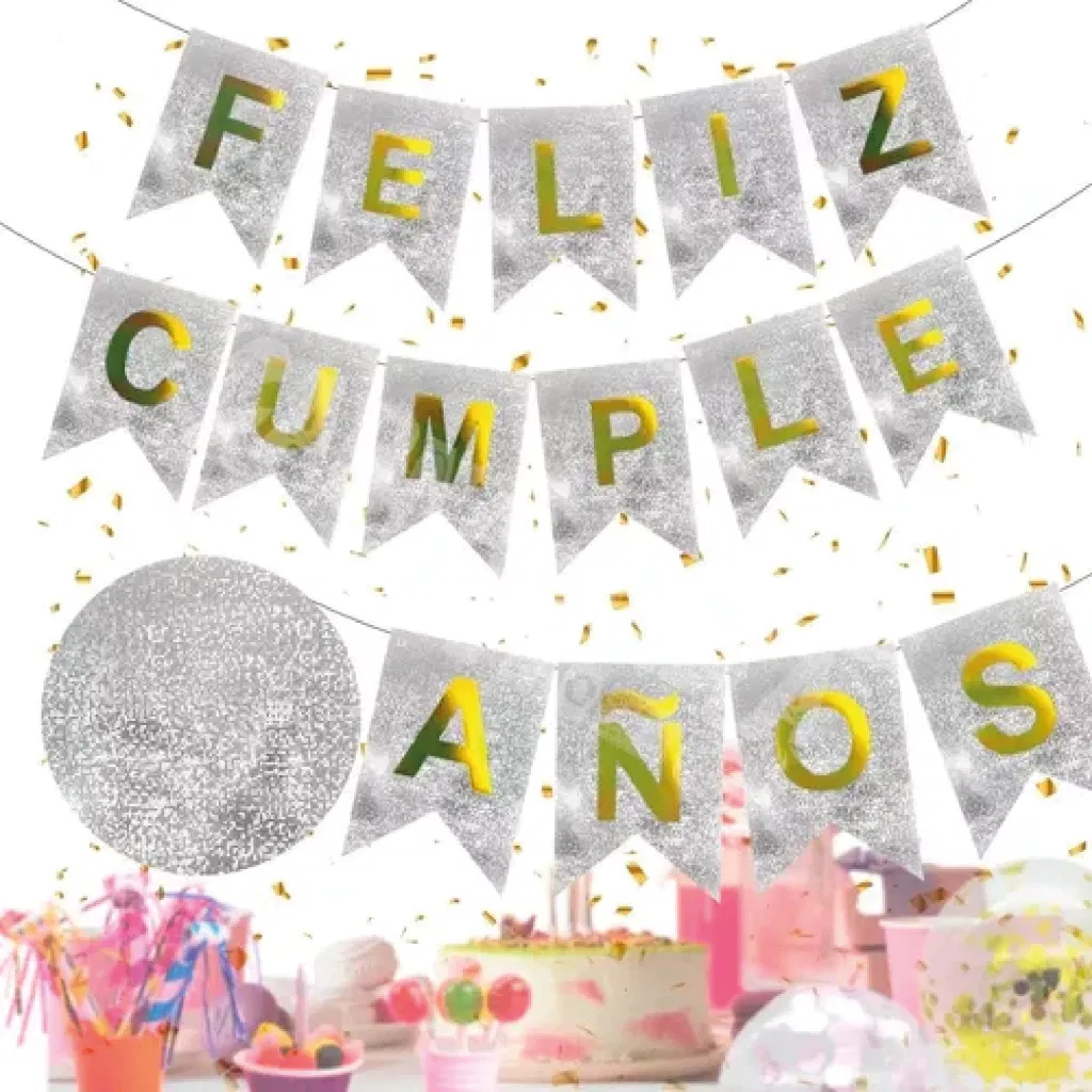 Banderín "feliz cumpleaños" PLATEADO holográfico