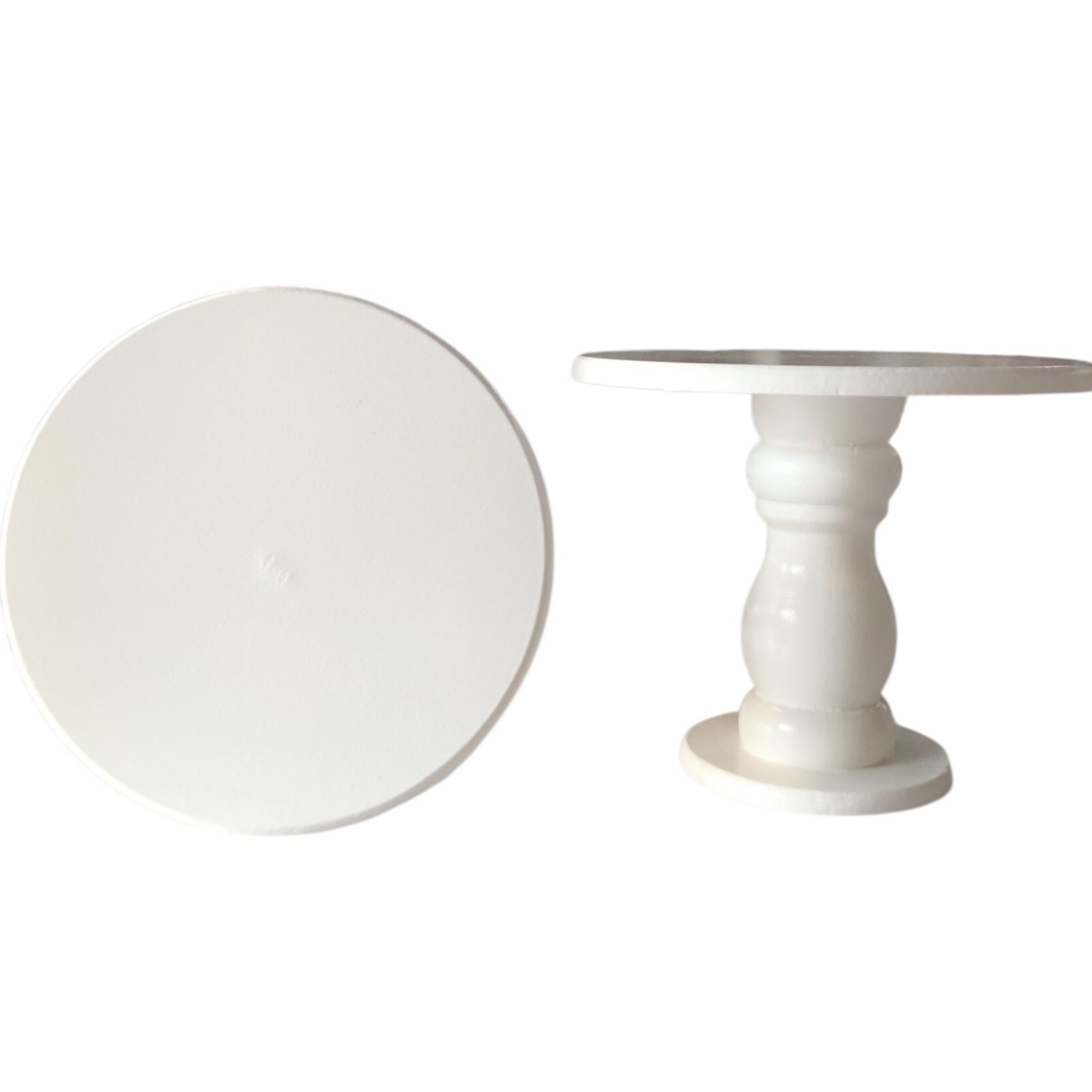 Base BLANCA alzada pie de torta de madera Clásica 15cm de alto x 20cm de diámetro