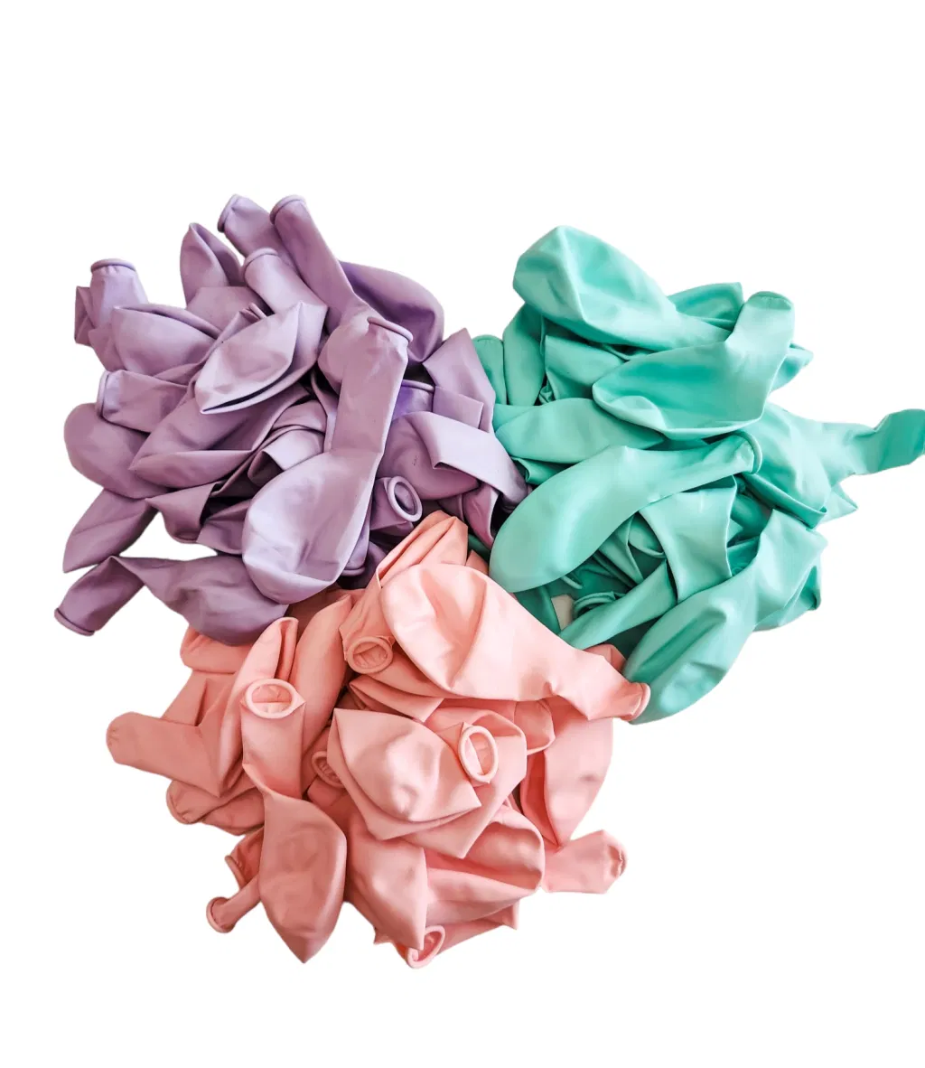 Kit de globos de 10" x30 unidades (Lila pastel, rosa pastel y aqua)
