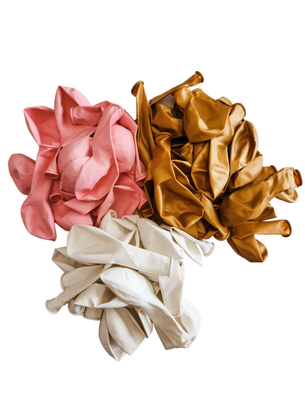 Kit de globos de 10" x30 unidades (Rosa pastel, dorado y blanco)