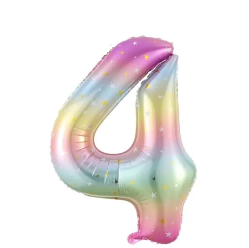 Globo número 4 degradé pastel con ESTRELLITAS 1mts. 42"