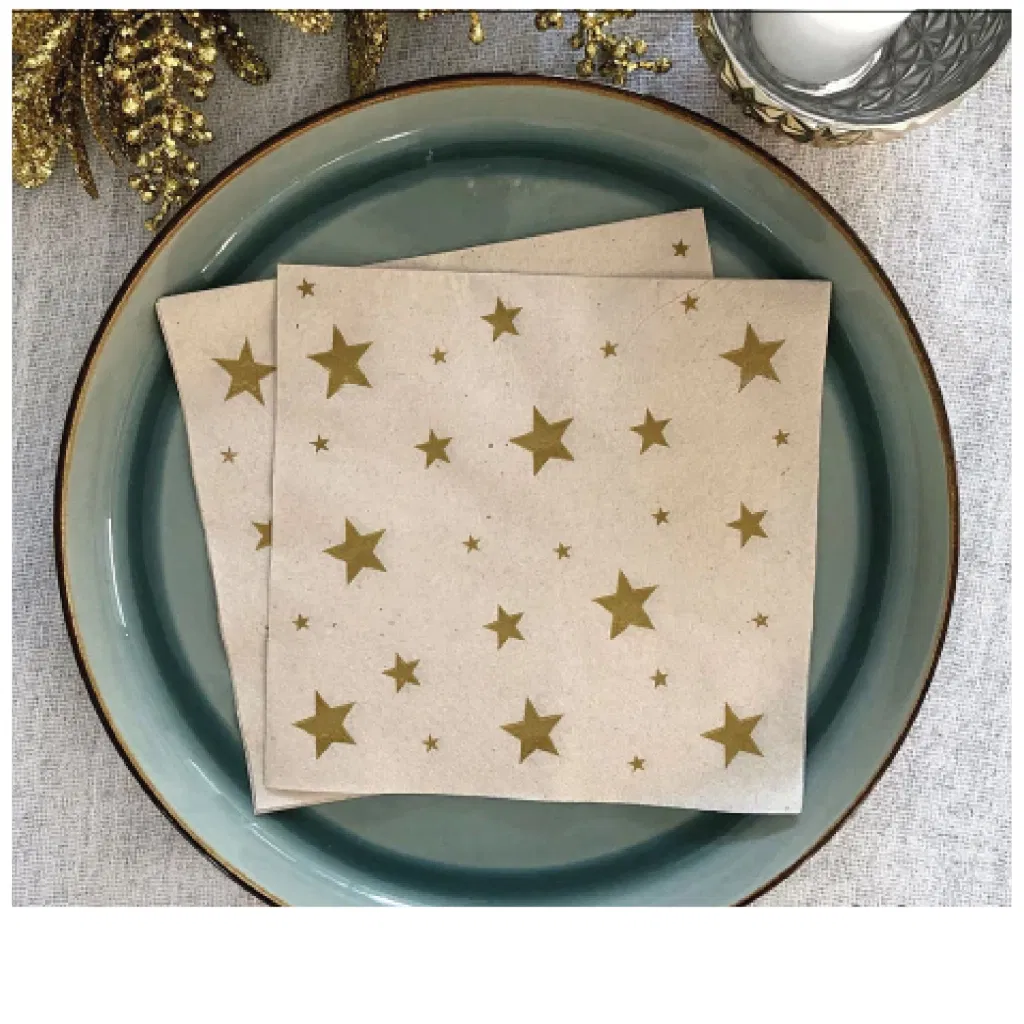 Servilletas blancas con estrellitas DORADAS x25 unidades