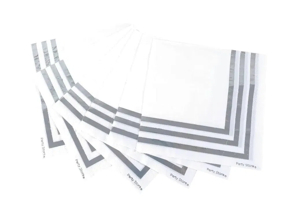 Servilleta blanca borde plateado x12 unidades