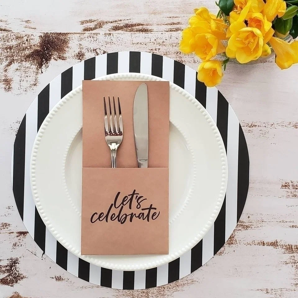 Plato de sitio de papel rayas blanco y negro x24 unidades