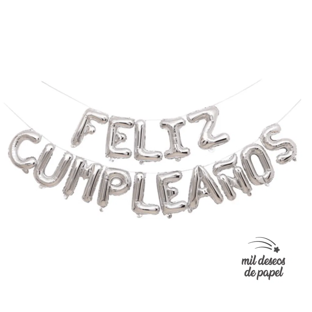Globo frase "feliz cumpleaños" 35cm de alto c/letra plateado