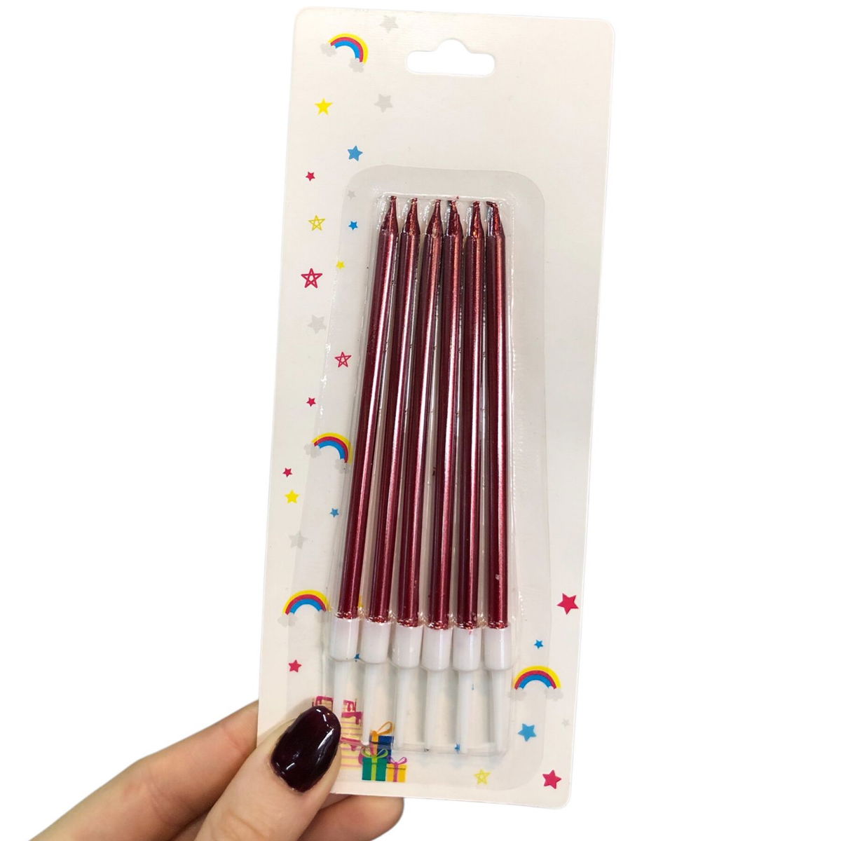 Vela METALIZADA ROJA en blister x6 unidades