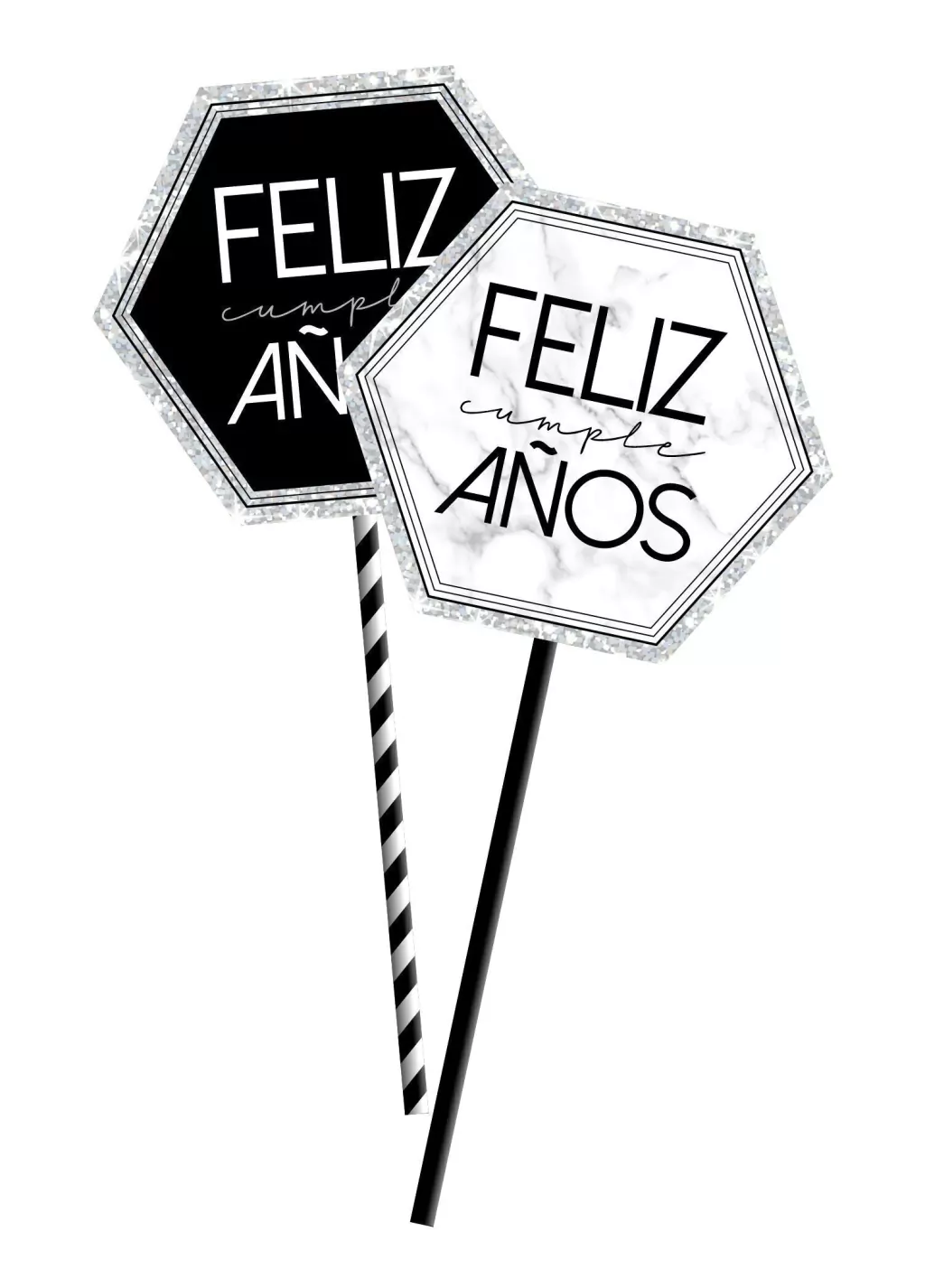 Big topper exagonal plateado x1 unidad