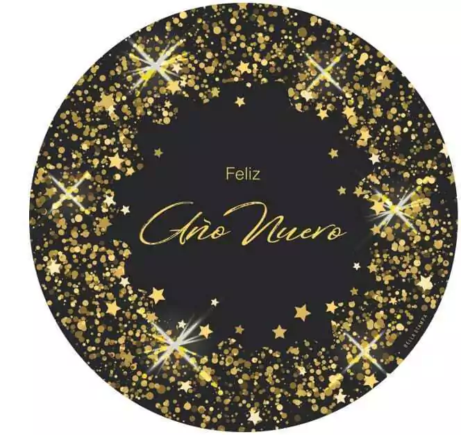 Plato de sitio de papel Año Nuevo fondo negro con estrellas doradas x24 unidades