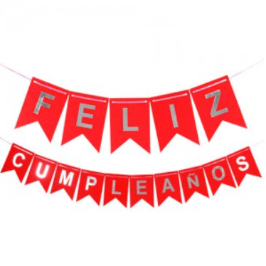 Banderín ROJO "Feliz cumpleaños" glitter