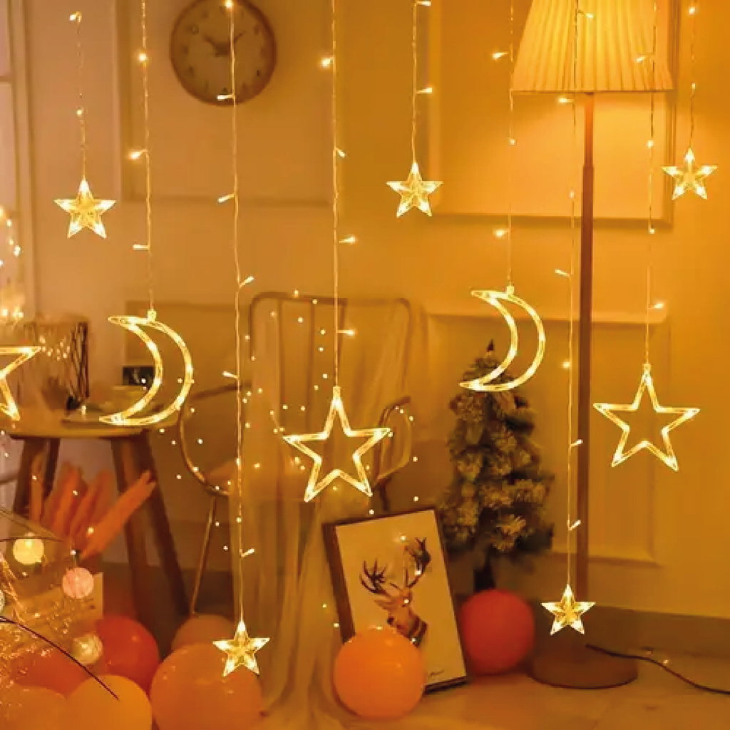 Cortina LUNAS Y ESTRELLAS 114 led 3mts de largo x 60cm de alto