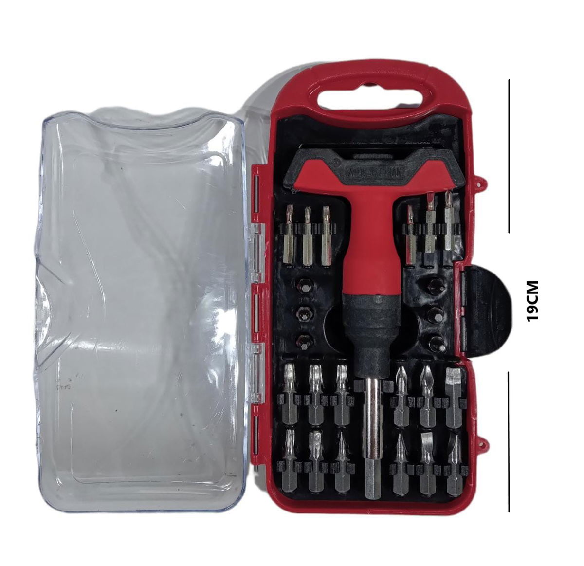 Set destornillador 25 piezas rojo y negro en caja acrílica (127)