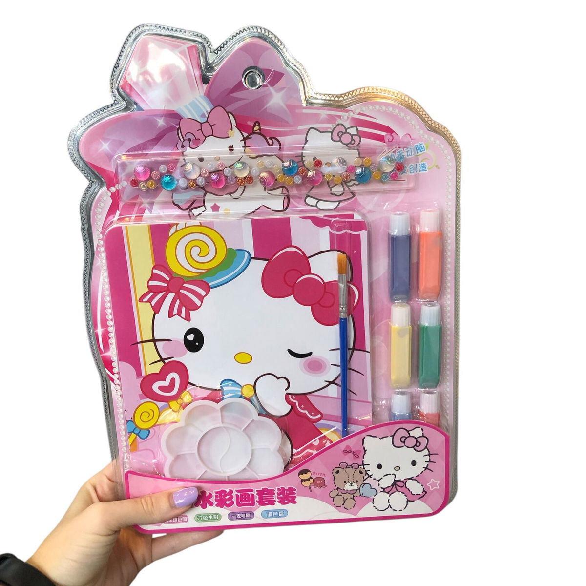 Librito para colorear en blister KITTY con ACUARELA y strass (HK-9894)