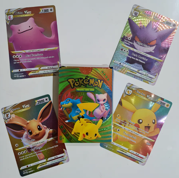 Cartas pokemón en CAJITA MULTICOLOR METALIZADAS x 25 cartas