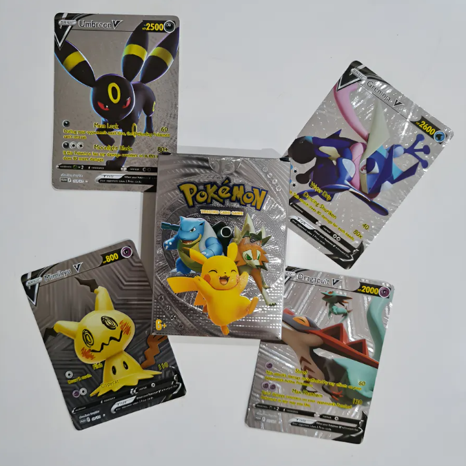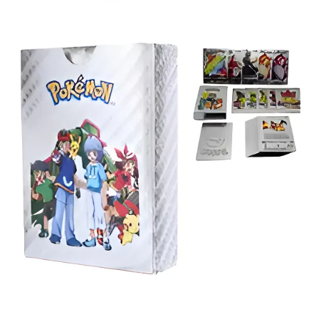 Cartas pokemón en CAJITA PLATEADA METALIZADAS x 25 cartas