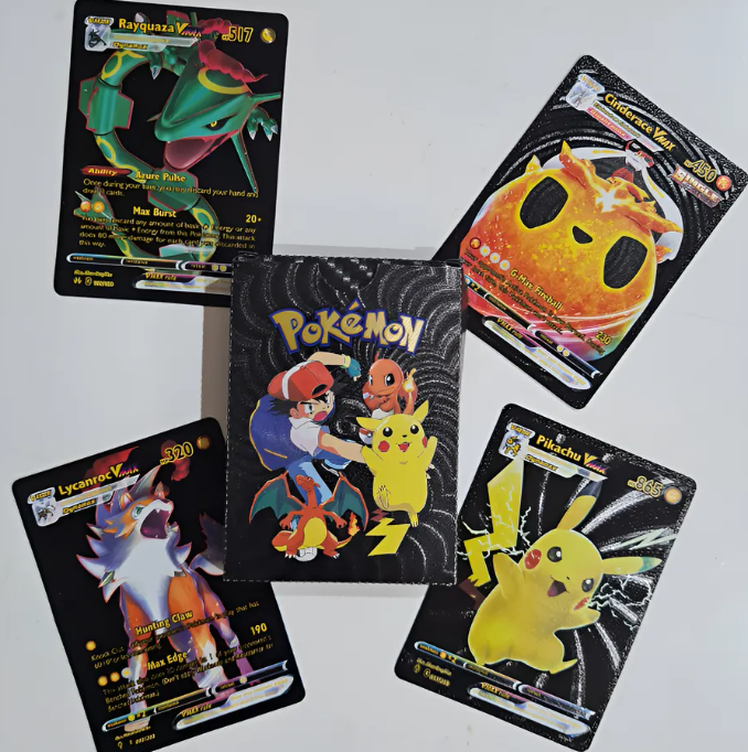 Cartas pokemón en CAJITA NEGRA METALIZADAS x 25 cartas