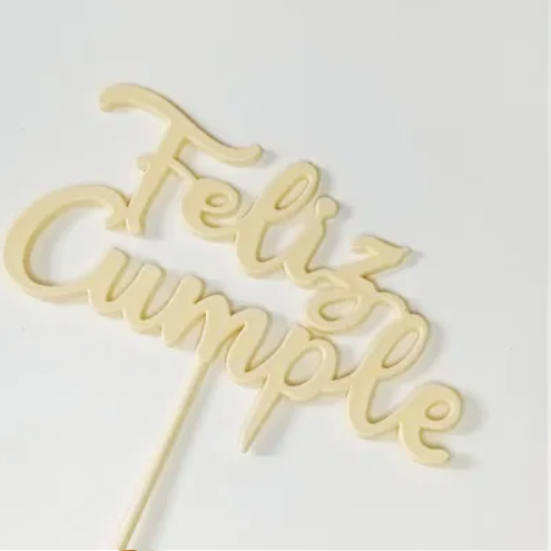 Topper MARFIL feliz cumpleaños de plástico