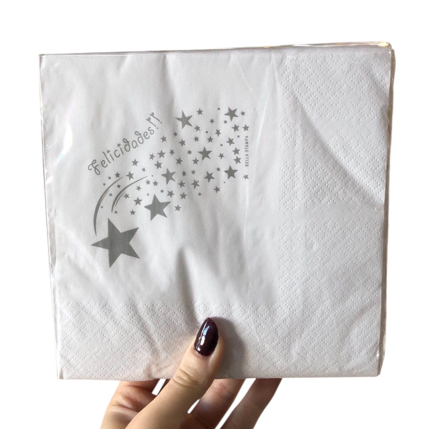 Servilleta de papel Felicidades estrella PLATEADO x12 unidades