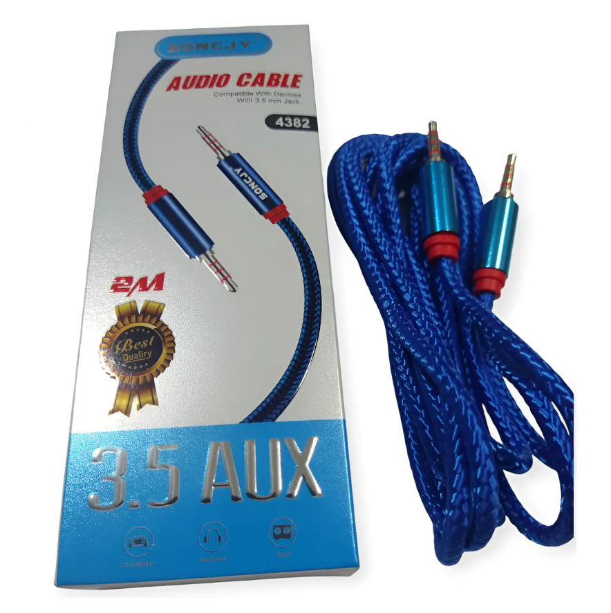 Cable auxiliar 3,5mm 2mts mallado en caja (4382)