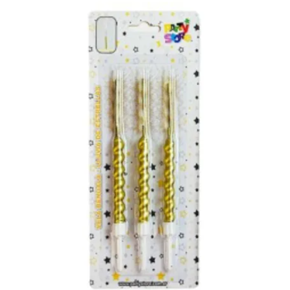 Vela bengala con ondas dorada x3 unidades