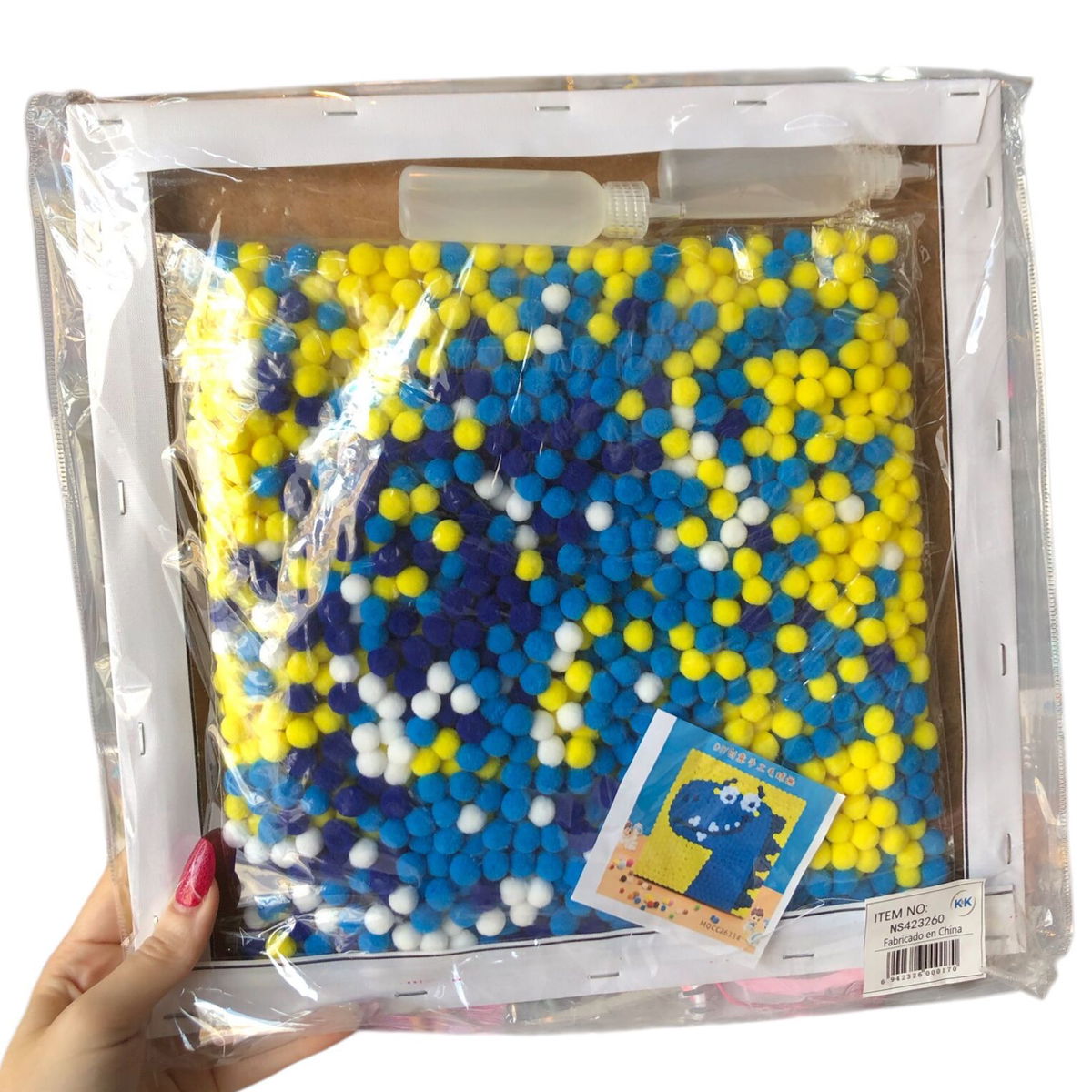 Kit pintura DINO con POMPONES GRANDE 3D 30x30cm