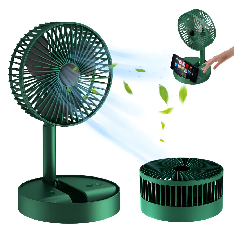 Ventilador recargable con brazo plegable en caja verde (FAOO8CP)