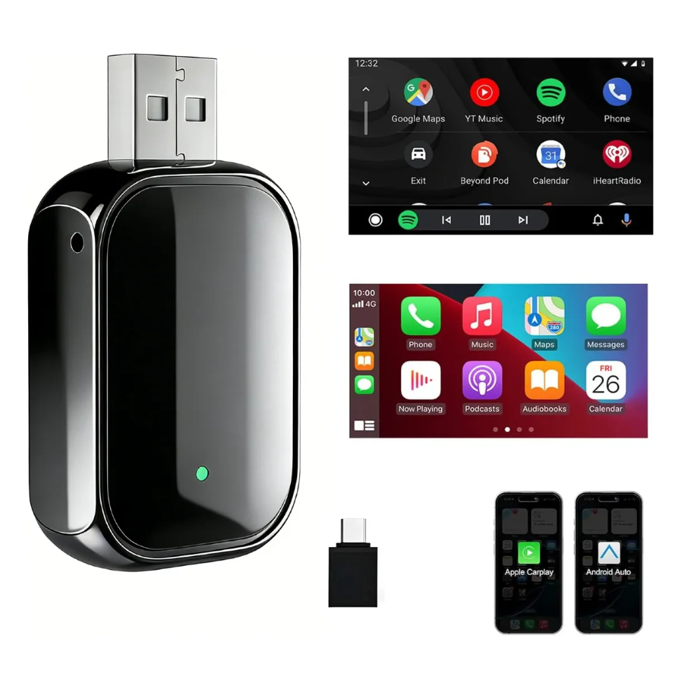 Adaptador inalámbrico CarPlay android 2 en 1 para auto usb tipo c