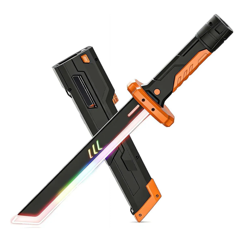 Espada LED recargable con efectos de sonido lanza chispas incluye funda en caja (001)