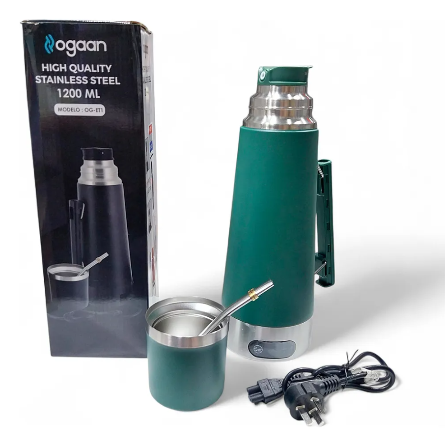 Termo eléctrico 1200ml con mate de acero inoxidable y bombilla (OG-ET1)