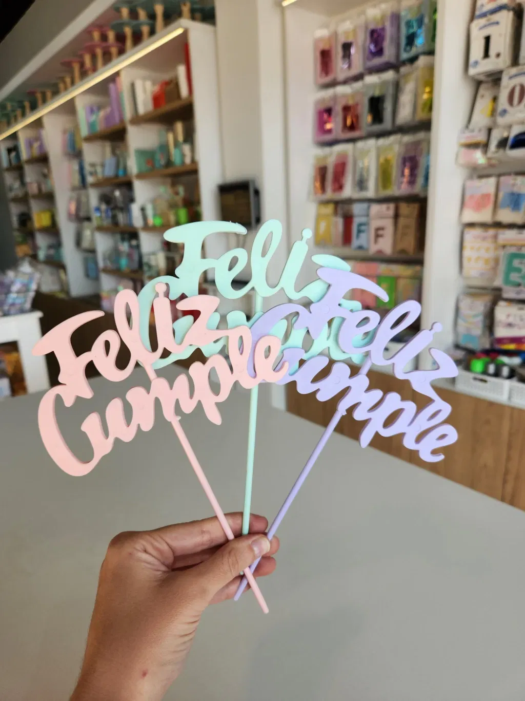 Topper feliz cumpleaños LILA PASTEL de plástico