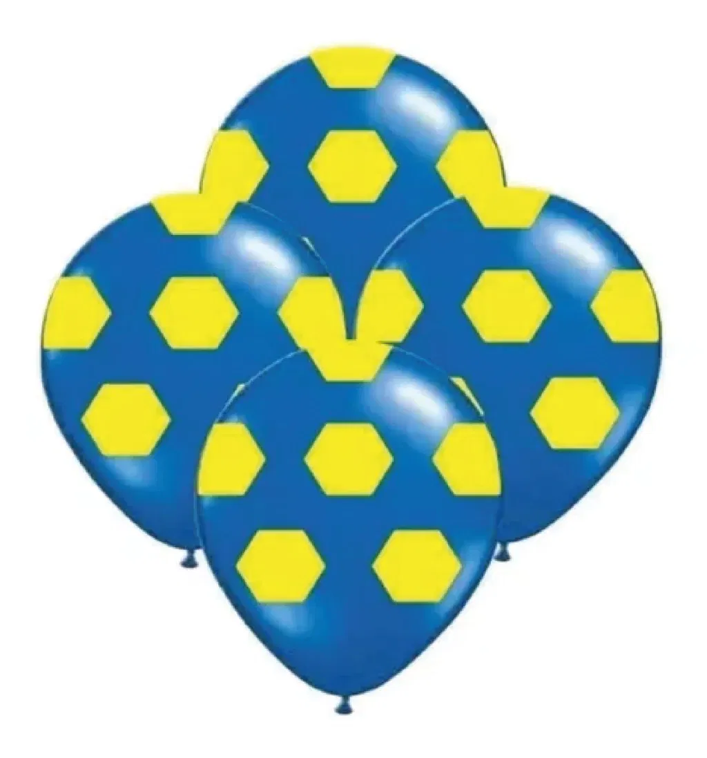 Globo de latex estampado pelota azul y amarillo x5 unidades