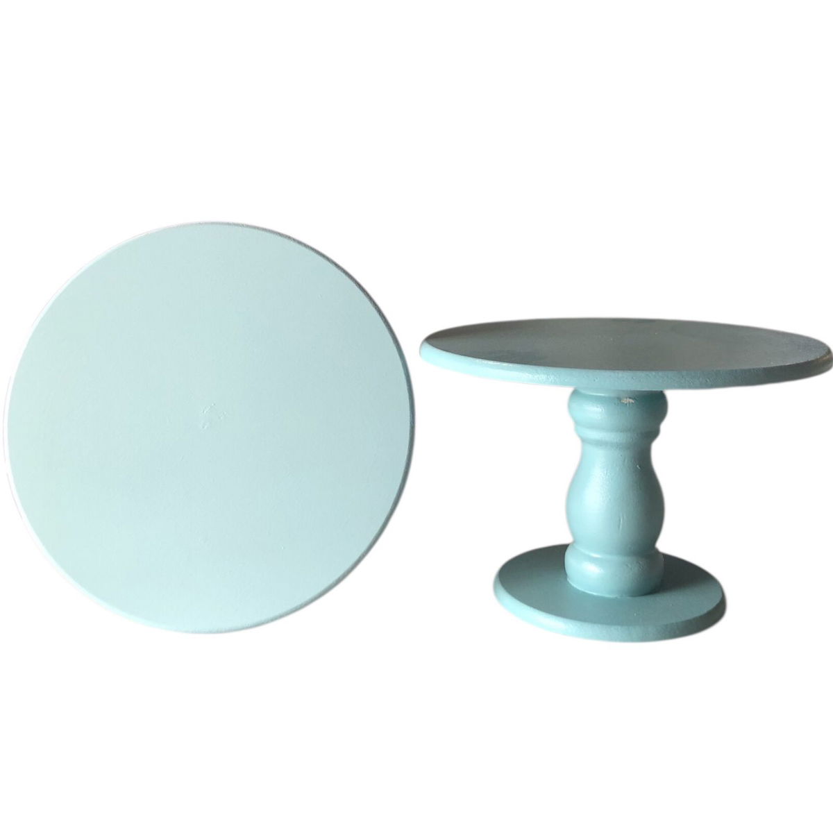 Base CELESTE PASTEL alzada pie de torta de madera Clásica 15cm de alto x 25cm de diámetro
