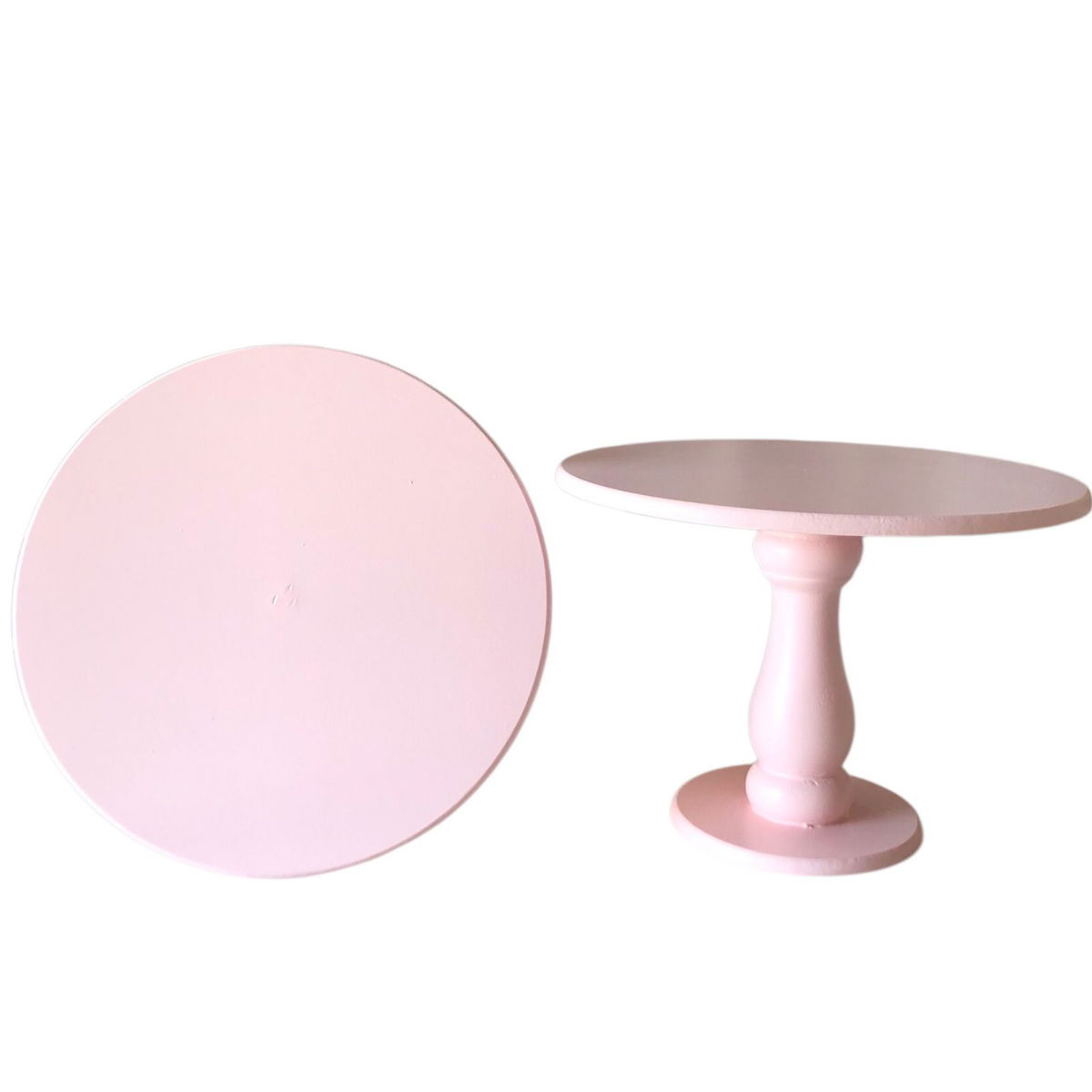 Base ROSA PASTEL alzada pie de torta de madera Clásica 20cm de alto x 30cm de diámetro