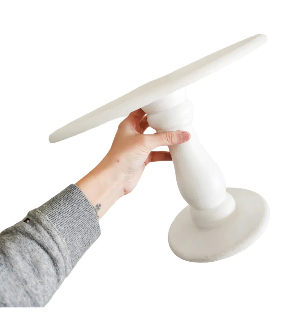 Base BLANCA alzada pie de torta de madera Clásica 20cm de alto x 30cm de diámetro