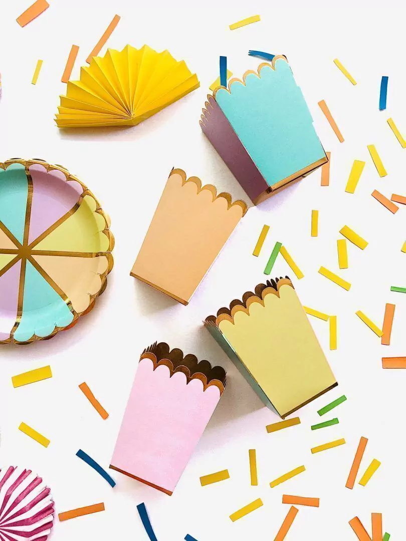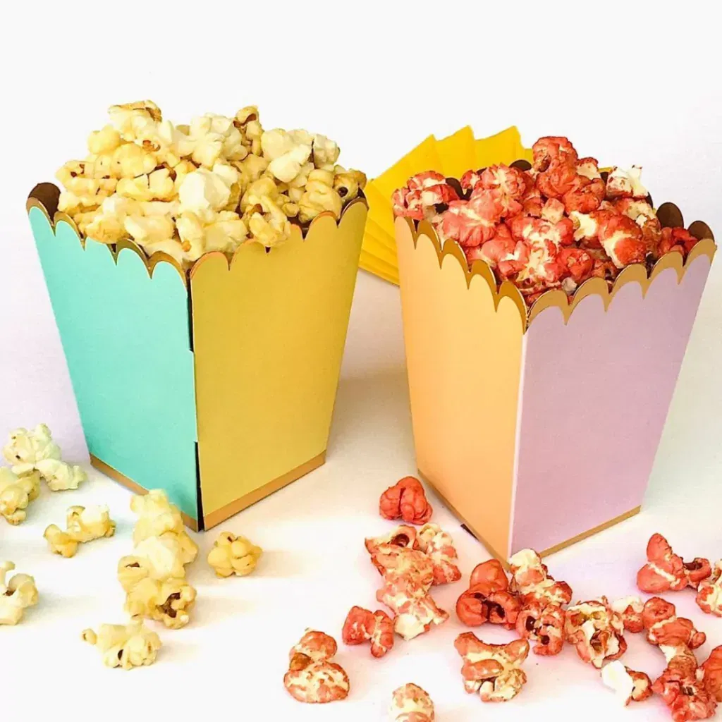 Cajitas pochocleras multicolor pastel contorno dorado x8 unidades