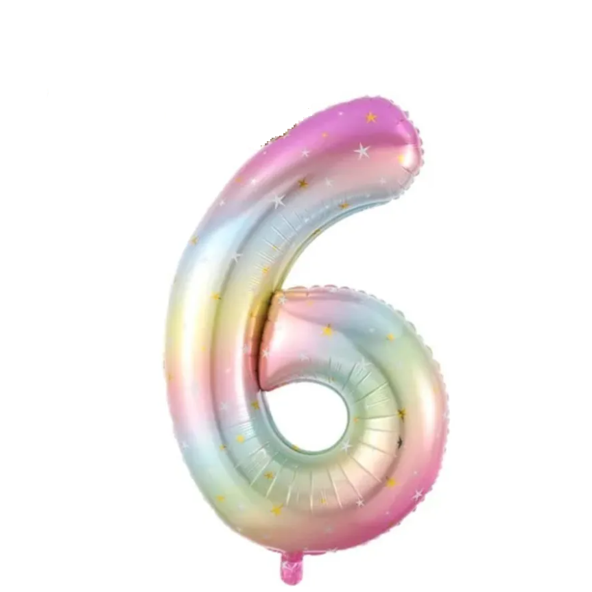 Globo número 6 degradé pastel con ESTRELLITAS 1mts. 42"