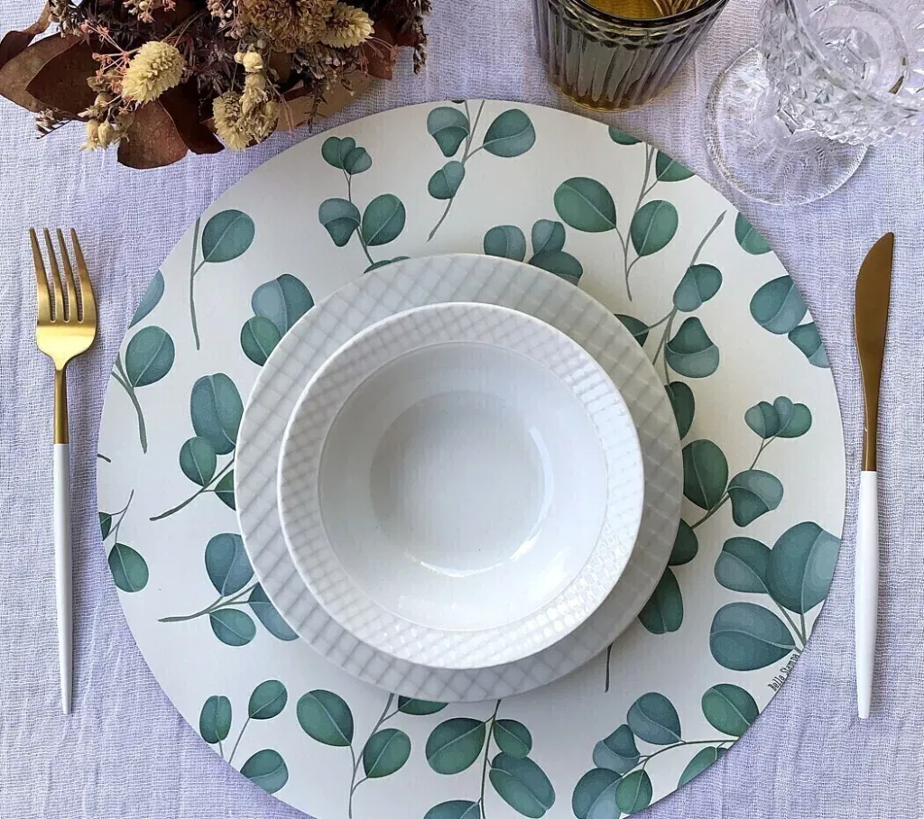 Plato de sitio de papel eucaliptos x24 unidades