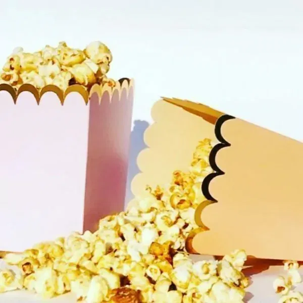 Cajitas pochocleras rosa pastel contorno dorado x8 unidades