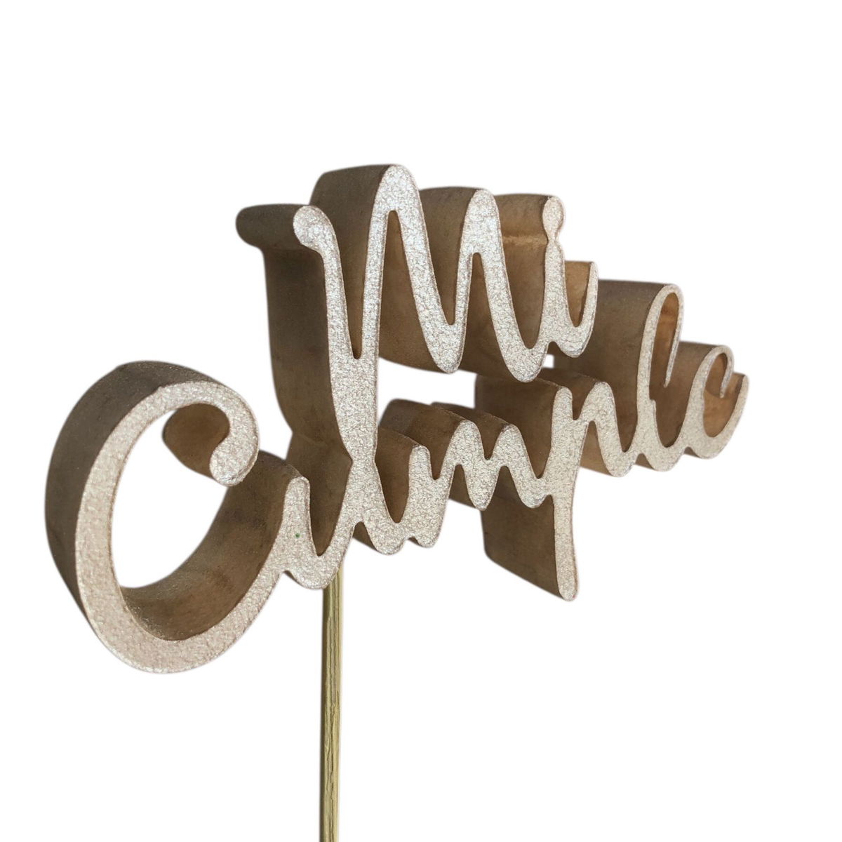 Cartelito cake topper de polifan "Mi cumple" CHAMPAGNE x1 unidad