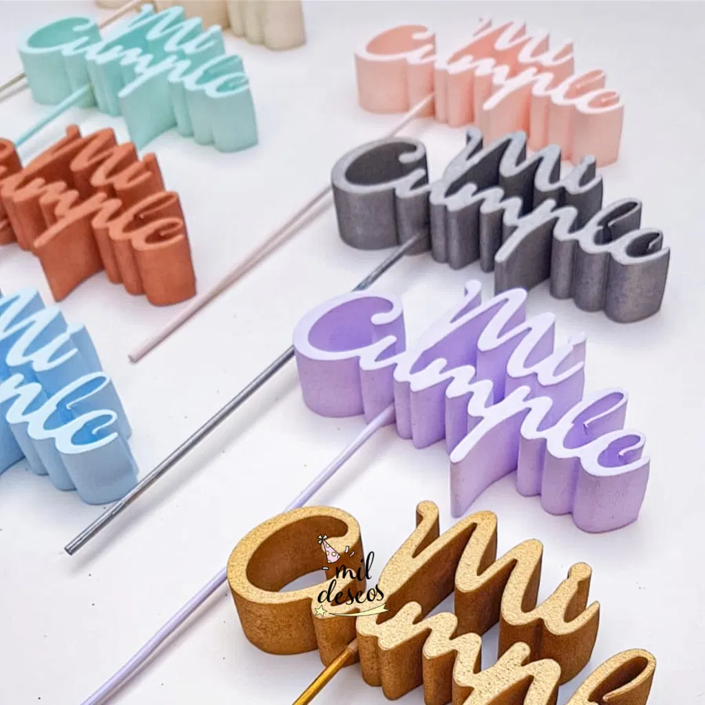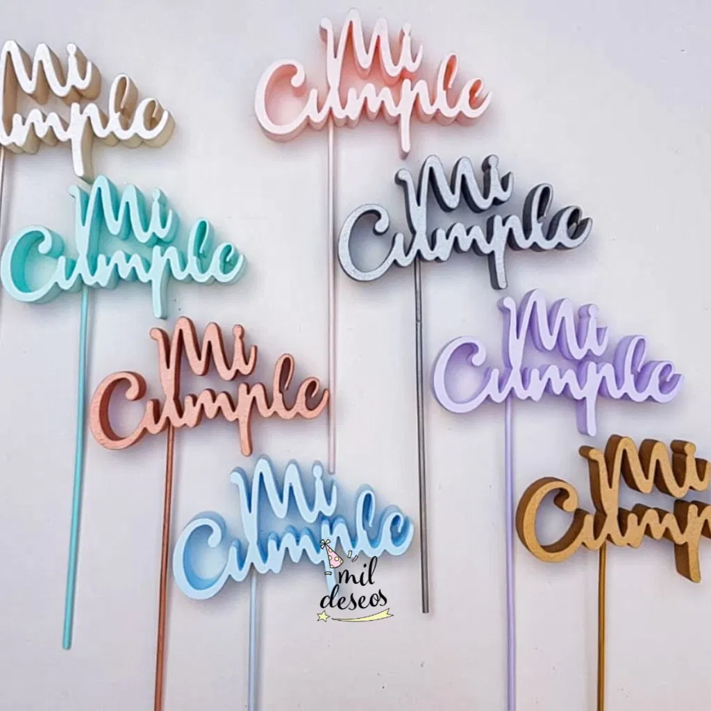 Cartelito cake topper de polifan "Mi cumple" ROSA GOLD x1 unidad