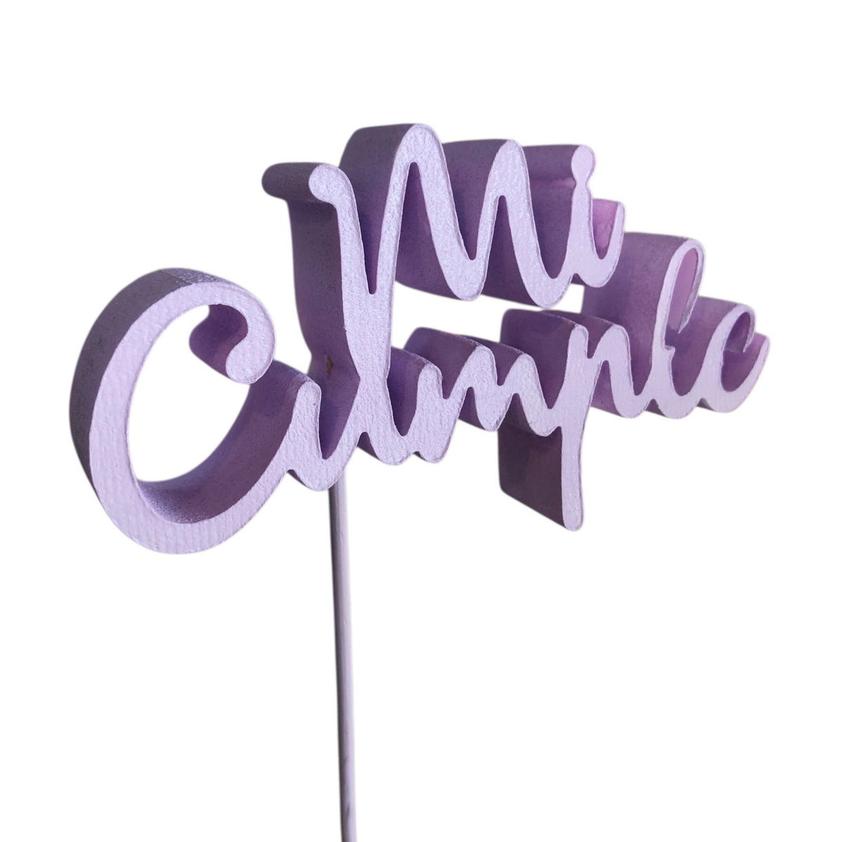 Cartelito cake topper de polifan "Mi cumple" LILA PASTEL x1 unidad