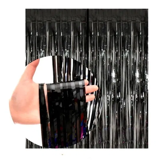 Cortina de flecos negra metalizada
