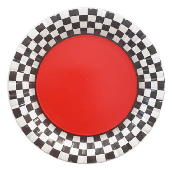 Plato rojo borde cuadritos 22,5cm x10 unidades
