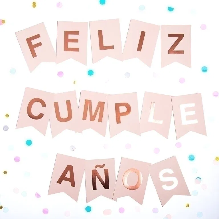 Banderín "feliz cumpleaños" rosa stamping rosa metalizado
