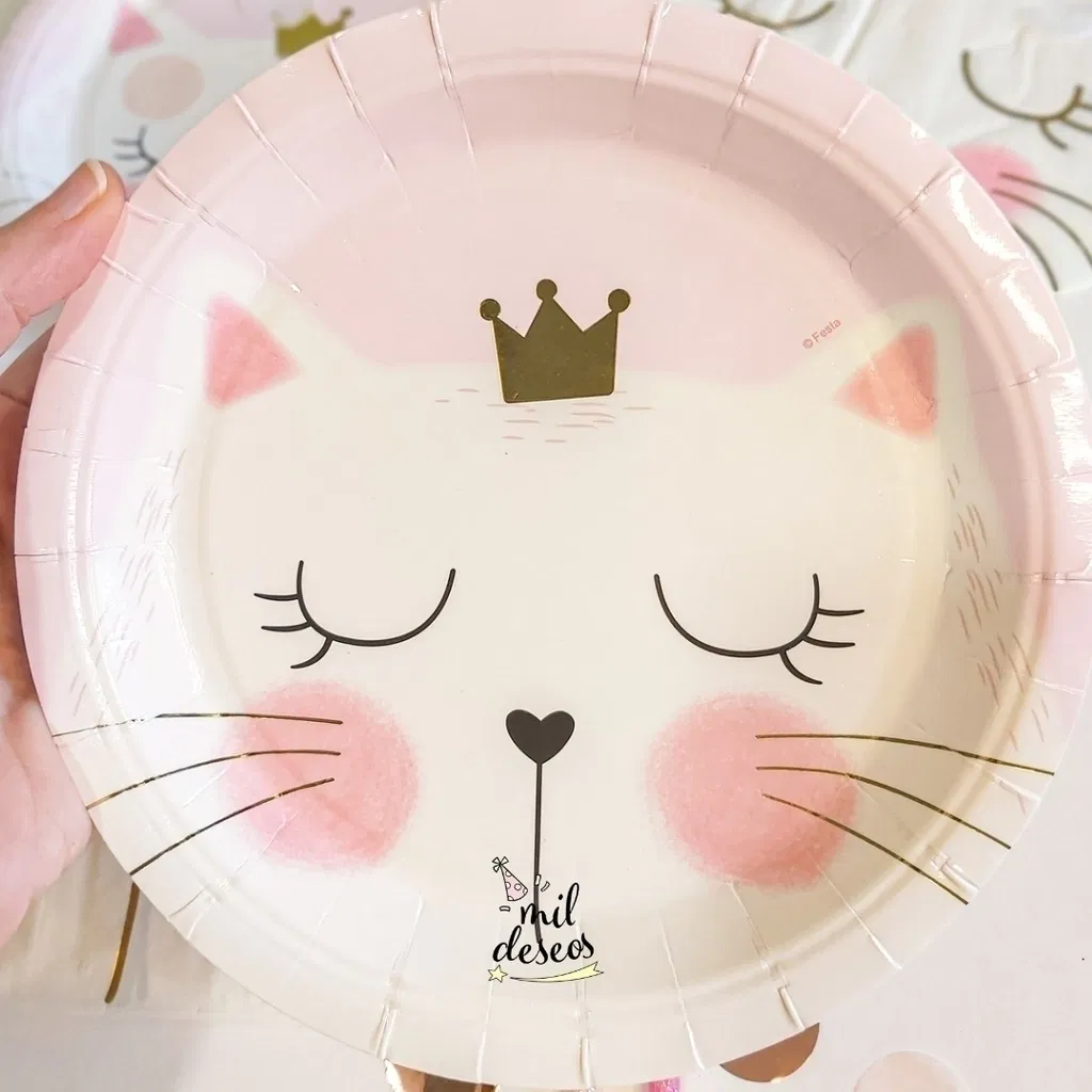 Plato gatita con corona x6 unidades