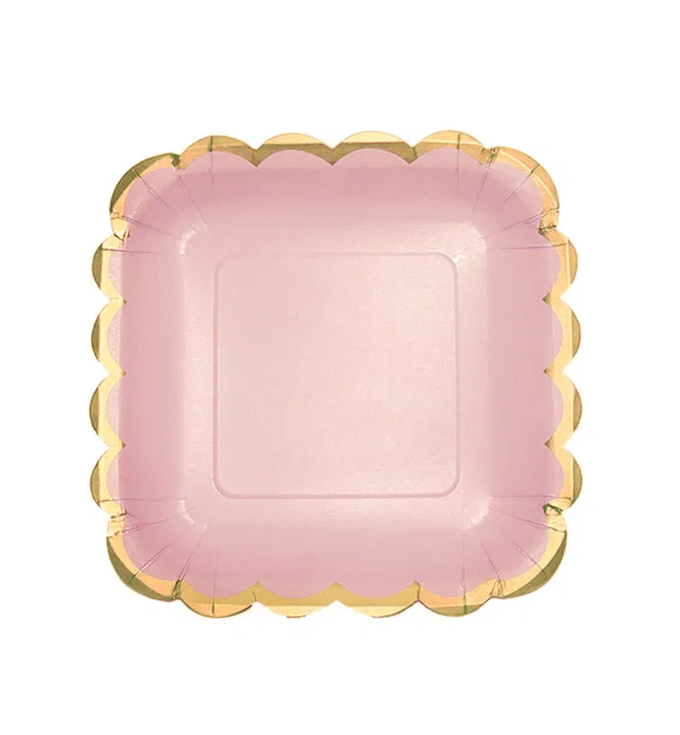 Plato cuadrado onditas doradas ROSA PASTEL 18cm x8 unidades
