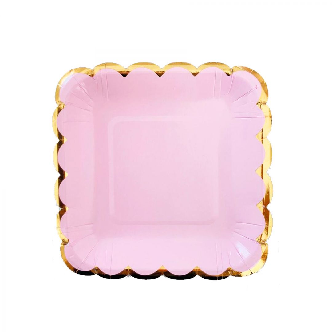 Plato cuadrado onditas doradas LILA PASTEL 18cm x8 unidades