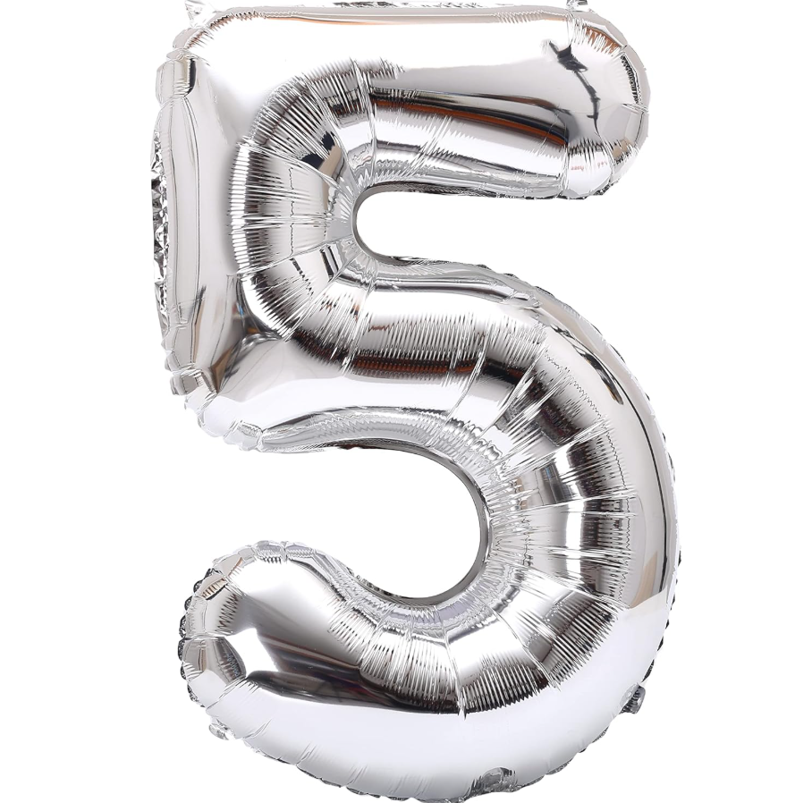 Globos números plateados N5 80cm 32" x1 unidad