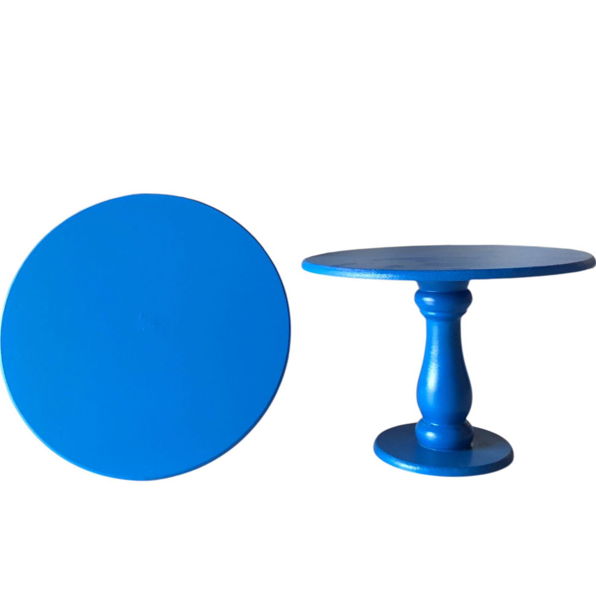 Base AZUL alzada pie de torta de madera Clásica 20cm de alto x 30cm de diámetro