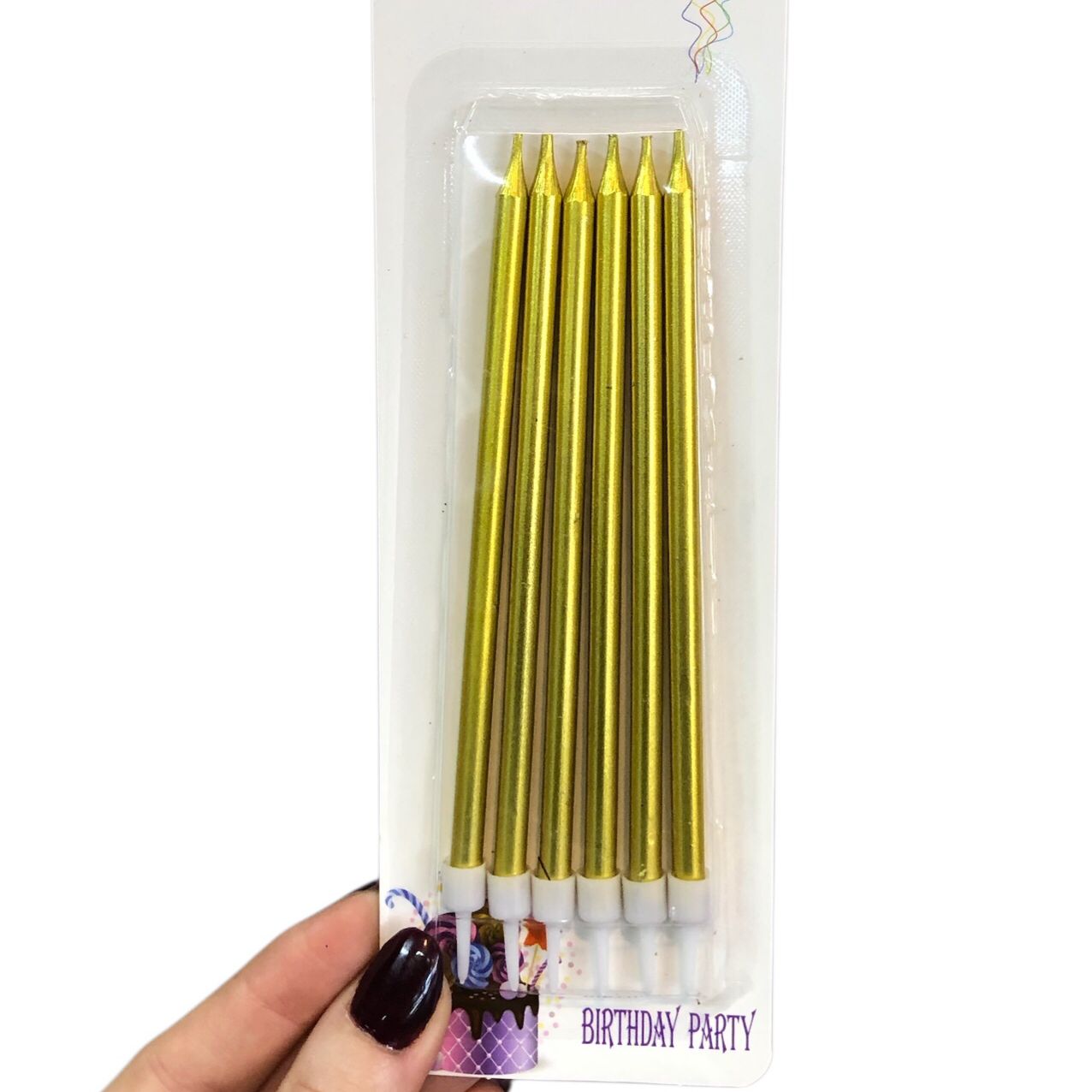 Vela METALIZADA DORADA en blister x6 unidades