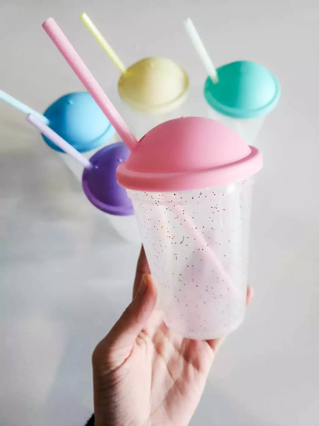Vaso milkshake ROSA PASTEL GLITTER con sorbete 330cc (ideal para sorpresitas)